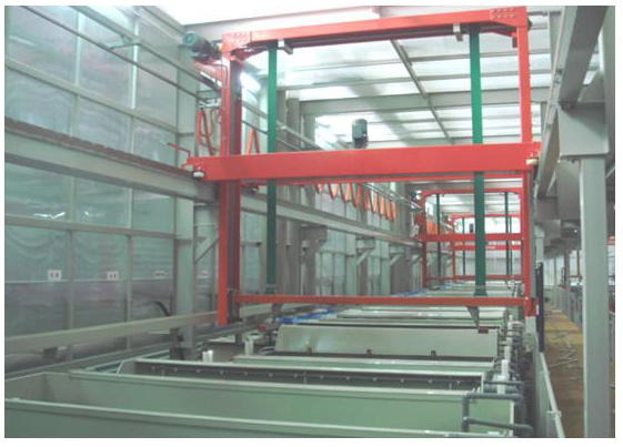 3、鍍槽內(nèi)均設(shè)有空氣攪拌系統(tǒng),與機(jī)械攪拌一起用以保證清洗和沉鍍質(zhì)量。